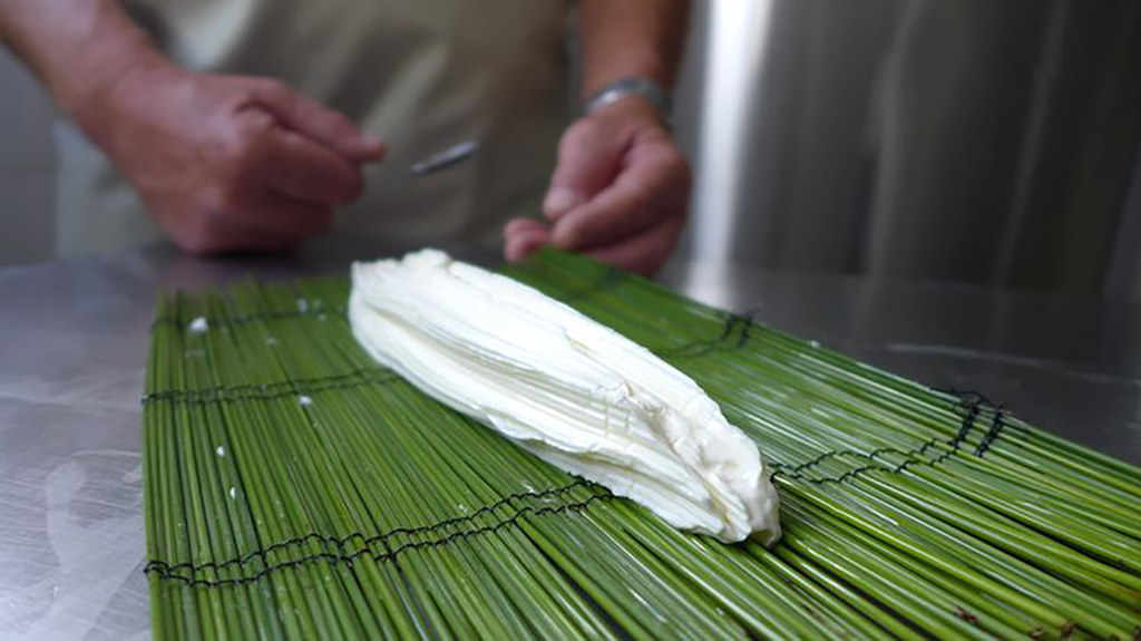 Erick Jarnan, basé à Saint Nazaire sur Charente, seulement à quelques kilomètres de l’île d’Oléron, est le seul producteur de jonchée qui travaille à partir de lait de vache cru et de joncs naturels.