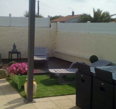 Dans une petite résidence familiale à 100m de la plage, avec accès direct à pied, gîte pour 5pers - avec une terrasse ensoleillée avec salon de jardin et table de terrasse